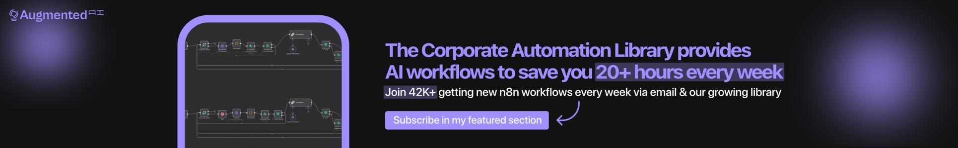 As the founder of Augmented AI, I created the Corporate Automation Library — a growing collection of ready-to-use n8n AI workflows and my proprietary 5-Level AI Automation Framework. These tools help businesses eliminate manual work, scale without adding headcount, and unlock new revenue streams.